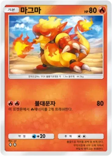마그마 | ⬛⬛ 불대문자 (80) ※ 추가 효과: 이 포켓몬에서 불 에너지를 2개 트래쉬한다. |