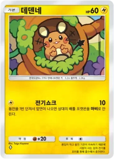 데덴네 | ⬛ 전기쇼크 (10) ※ 추가 효과: 동전을 1번 던져서 앞면이 나오면 상대의 배틀 포켓몬을 마비로 만든다. |
