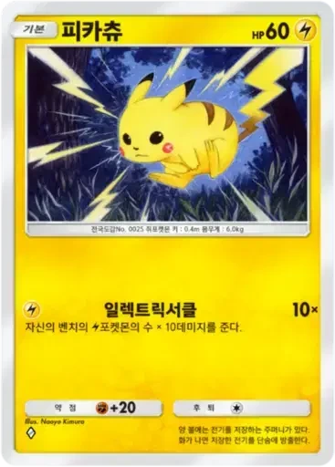 피카츄 | ⬛ 일렉트릭서클 (10x) ※ 추가 효과: 자신의 벤치의 전기 포켓몬의 수 x 10 데미지를 준다. |