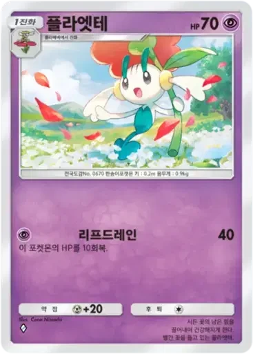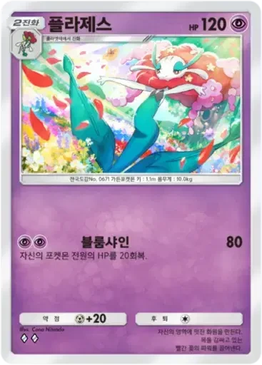 플라제스 | ⬛⬛ 블룸샤인 (80) ※ 추가 효과: 자신의 포켓몬 전원의 HP를 20회복 |