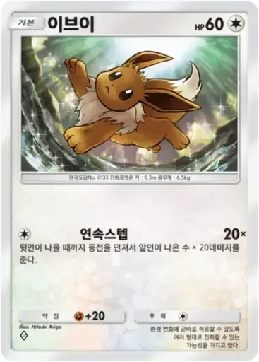 이브이 | ⬜ 연속스탭 (20x) ※ 추가 효과: 뒷면이 나올 때까지 동전을 던져서 앞면이 나온 수 x 20데미지를 준다. |