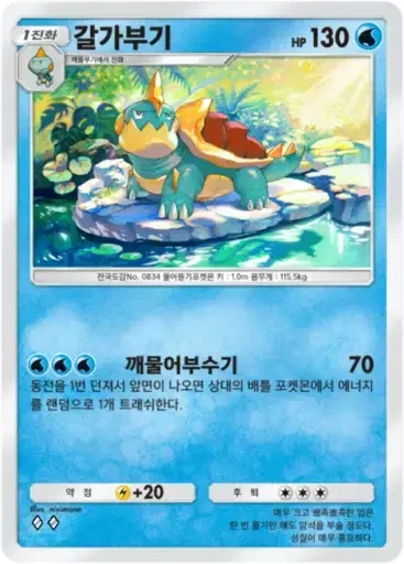 갈가부기 | ⬛⬛⬛ 깨물어부수기 (70) ※ 추가 효과: 동전을 1번 던져서 앞면이 나오면 상대의 배틀 포켓몬에서 에너지를 1개 트래쉬한다. |