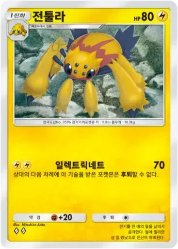 전툴라 | ⬛⬛ 일렉트릭네트 (70) ※ 추가 효과: 상대의 다음 차례에 이 기술을 받은 포켓몬은 후퇴할 수 없다. |