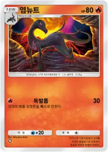 염뉴트 | ⬛⬛ 독발톱 (30) ※ 추가 효과: 상대의 배틀 포켓몬을 독으로 만든다. |