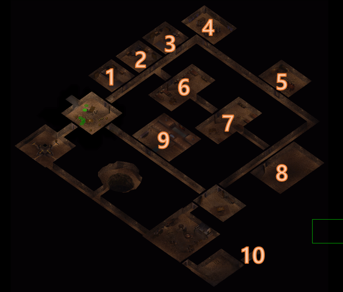지도 상 가장 오른쪽 아랫 편에 광산의 마지막 층인 4층으로 내려가는 입구가 있다.