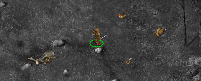 고라이온과 오우거들의 시체들이 있다. 기본 장비 및 몇 가지 아이템을 챙길 수 있다.