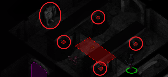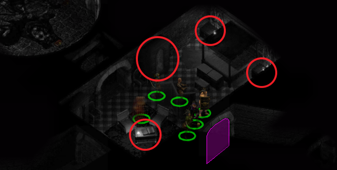 ※ 전투가 시작되면 시작 위치에 있는 문이 잠기므로 시작 위치에 숨어 있는 캐릭터는 전투를 할 수 없다.