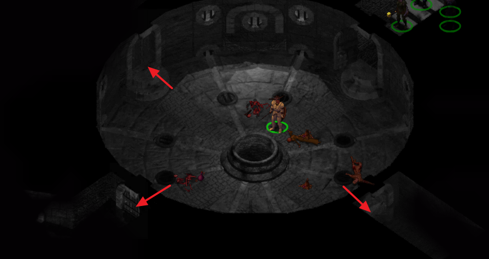 아래 4개의 방에 있는 적들을 전부 처리했다면 위와 같이 자동으로 일행은 이동된다.