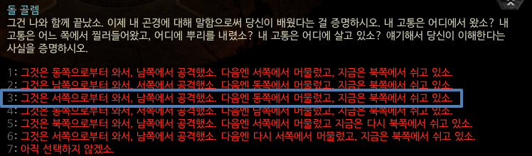 마찬가지로 오른쪽 위의 석상에게 말을 걸어 문제를 풀자.