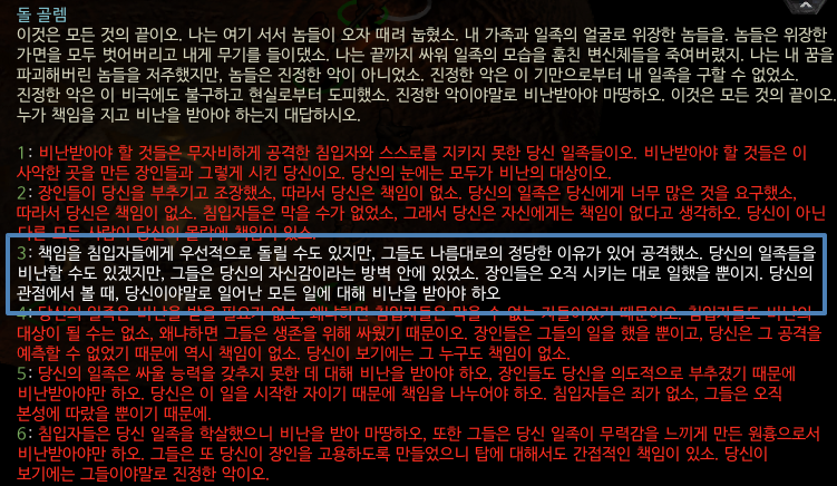 3가지의 관문을 전부 통과한 후 다시 둘락에게 대화를 걸어서