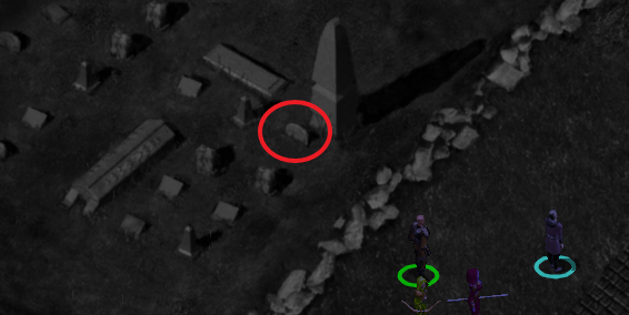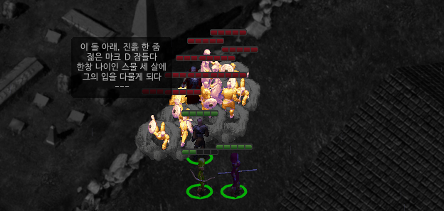 헬름의 신전 앞에 많은 무덤이 있는데 이 중 위의 묘비를 클릭하면 대어라그가 나타나서 경고한다.