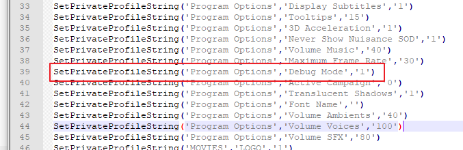SetPrivateProfileString('Program Options','Debug Mode','1')