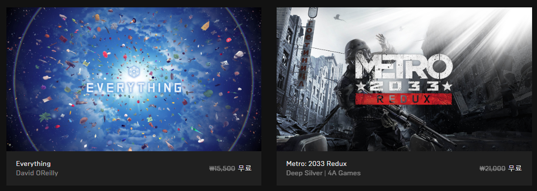 에픽게임즈에서 2019년 10월 3일까지 위의 두가지 게임을 무료로 제공하고 있다.