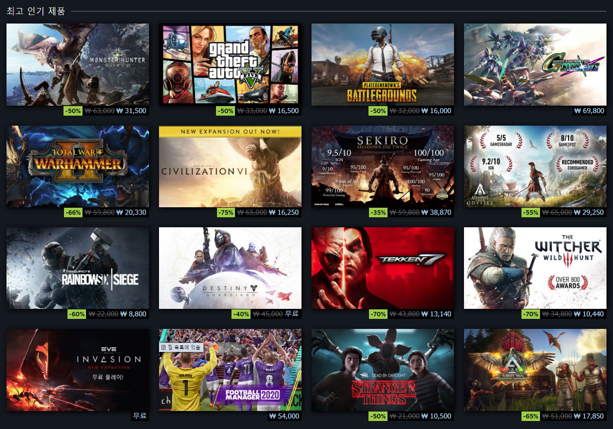 문명 , 철권 , 몬스터 헌터 월드 , 세키로 , 철권 7 등 다양한 게임이 할인 중이니 들어가서 확인해보는 것을 추천한다.