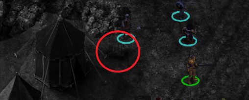 Tinderbox를 가지고 있는 상태로 클릭해야 해당 위치에 불이 붙고 안보이던 상자와 해골이 보인다.