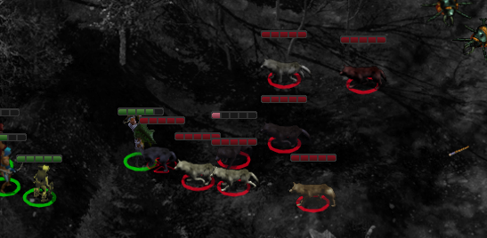 나무를 클릭하면 늑대들이 떼지어 공격해온다.