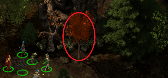 지도 상 중앙 부근에서 붉은 색 나무를 발견할 수 있다.