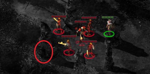 지도 중앙 부근에 화염 스켈레톤과 스켈레톤 마법사가 배치되어 있다.