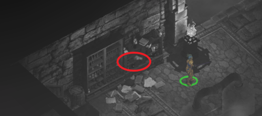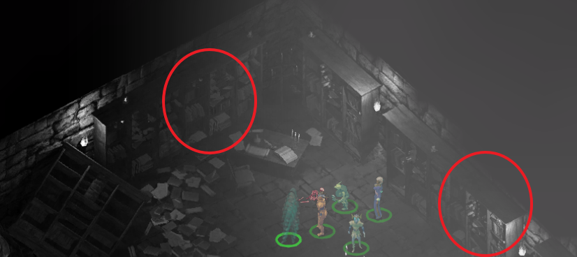 시작 위치에서 오른쪽의 책장에는 임의의 주문서가 있는 책장이 있다.