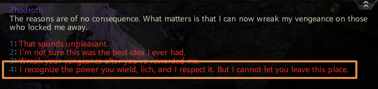 일행은 이 리치를 보내줄수도 있고 아니면 이 리치를 죽일수도 있다.