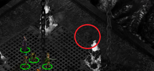 악마들이 있던 곳 오른편에 자비악의 안경을 착용하고 있으면 유령을 발견할 수 있다.