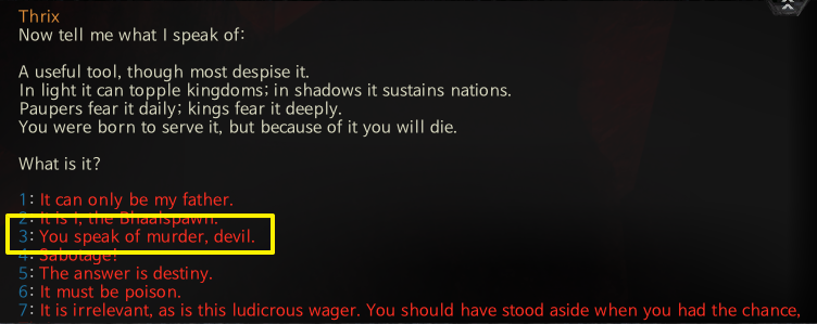 소환한 악마들을 처리하면 Thrix는 거래를 하나 하자고 제안한다.