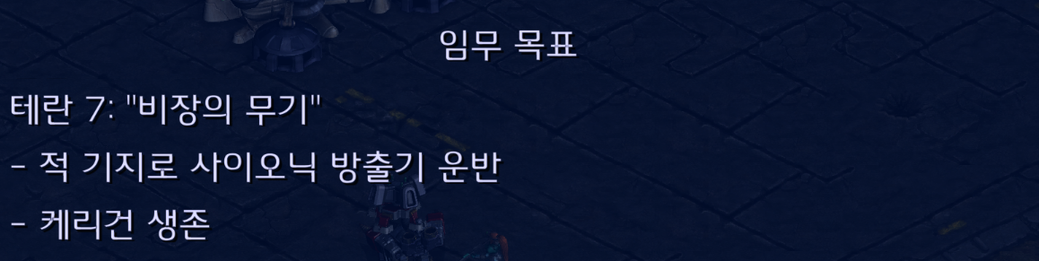 맵 가장 우측 파란색 표시한 곳에 사이오닉 방출기를 운반할 곳이 있다.