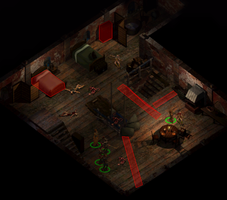 델로사 여관 문을 열고 들어서면 대장 데니스를 비롯한 파티가 있다.