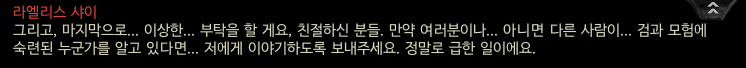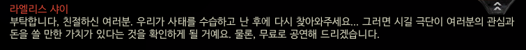 연극이 끝나고 라엘리스 샤이를 따라가서 대화를 걸어보자.