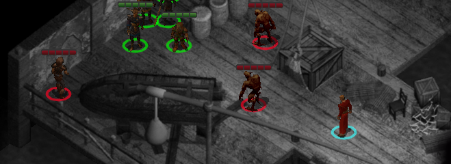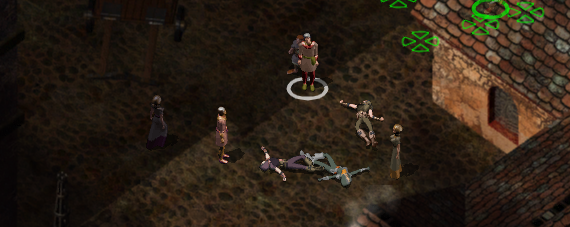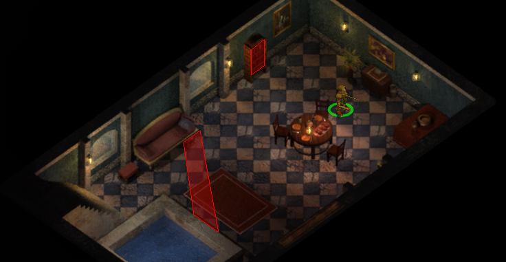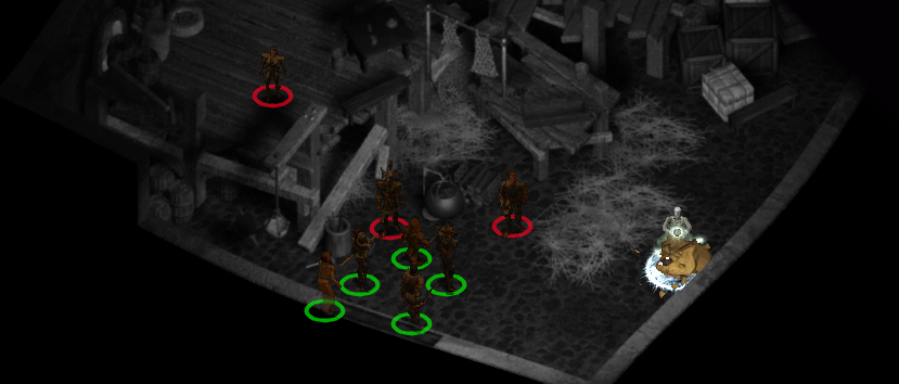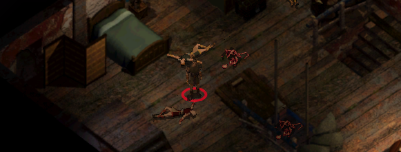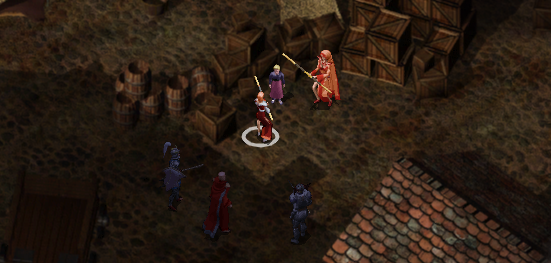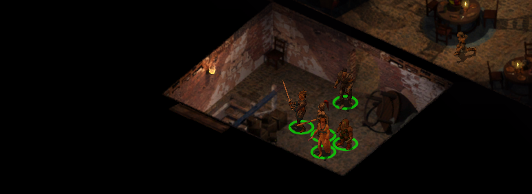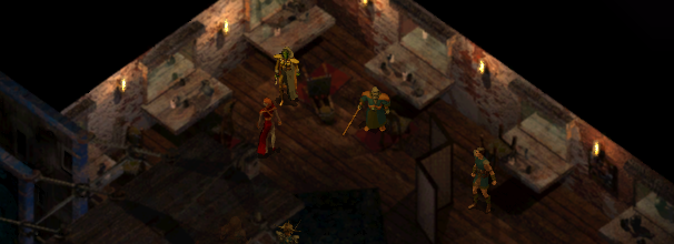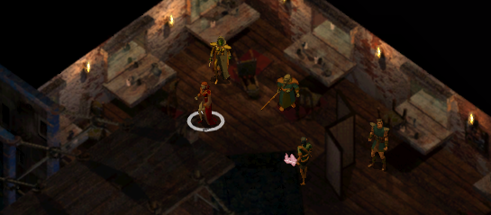 델로사 여관 문을 열고 들어서면 대장 데니스를 비롯한 파티가 있다.