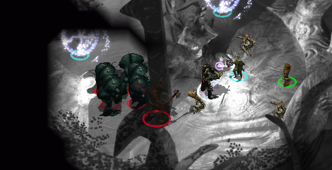 6-7. 처음 지역에서 위로 이동해보면 감옥 소장이 노예들과 전투를 벌이고 있다.