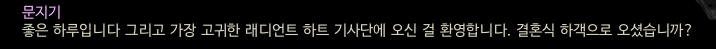 신부의 오빠가 또 대화를 걸어오는데 이것또한 특별한 관계라고 거짓말을 잘하면 통과된다.