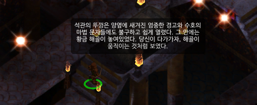 처리하고 아래 계단으로 내려가면 석관이 있는 클릭하면 황금 해골이 말을 걸어온다.