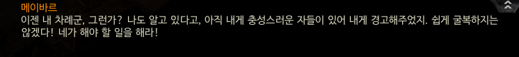 목걸이를 얻었으면 다시 메이바르에게 돌아가자. 보상을 준다.