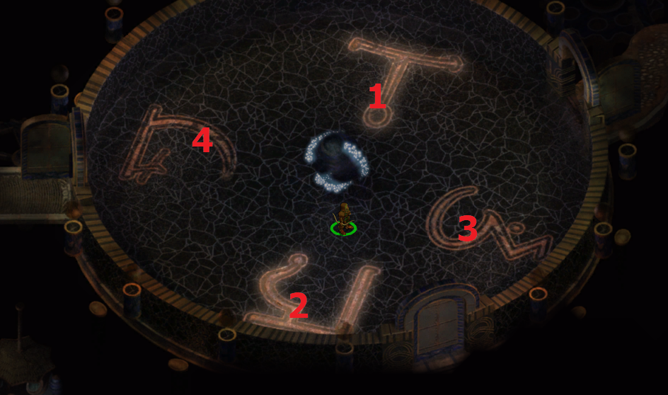 다음과 같은 순서로 문양을 클릭하자. 틀릴 경우 화염구가 날라온다.