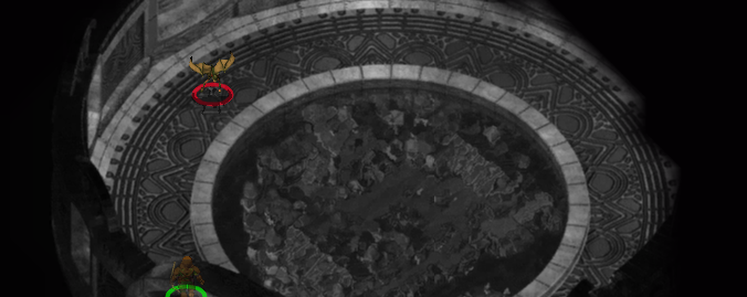 | 조형물 (함정) - x=3011,y=2755 | 위험 감지의 반지(함정 찾기+25%) , 발라의 도끼(적중시 다음 턴 동안 주문 시전 방해 적용 , 하루 한 번 마법 해제 주문 사용 가능) , 6666 골드 , 각 종 보석 |