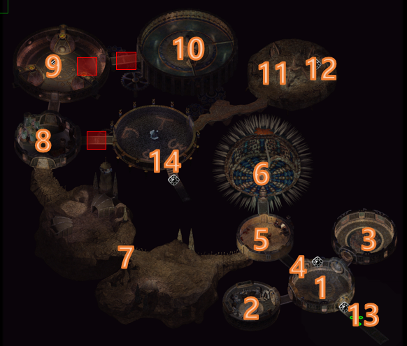 차원 구체를 들어오면 다음과 같은 원형의 방들로 이루어져 있다.