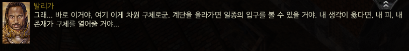 차원 구체 입구에 발리가를 데려가면 다음과 같은 대사를 이야기 한다.