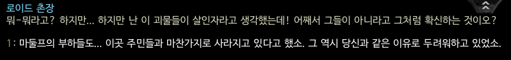 그리고 하룻 밤 묵고 나서 다시 로이드 촌장에게 가보자. 마둘프와 마을 협정을 맺었다고 한다.