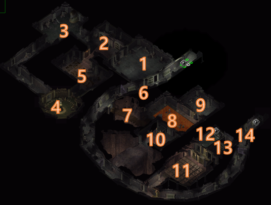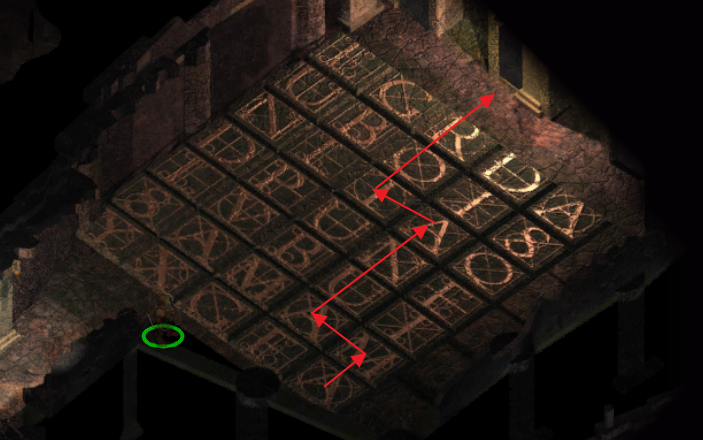 | 석상 - x=2613,y=1623 | 슬링+3 , 태양의 보석 , 황혼의 의식 , 마법 무기로부터 보호 , 원자분해 |