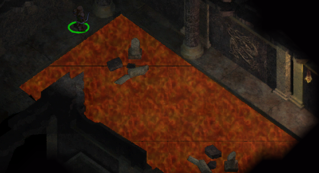 3-8. 그리고 다리를 건너 위로 올라가면 용암이 있는 방이 나오는데 용암을 밟으면 1~3데미지씩 피해를 입는다.