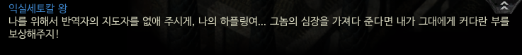 | 왕 처치시 | 마법의 밧줄 , 사후아긴 보물 창고 열쇠 , 관통자 창+3 (관통피해+10) |