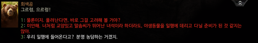 1,000 골드에 곰을 팔겠다고 하는데 힘과 카리스마가 높다면 가격을 깎거나 공짜로 얻을 수 있을 것이다.