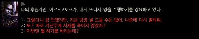 이번엔 후원자인 어르-고토즈가 나타나 해명하라고 한다.