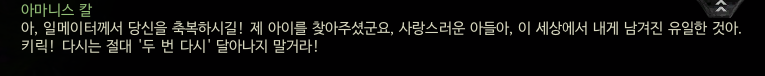 바로 은신처로 이동되고 아마니스 칼은 고마워한다.