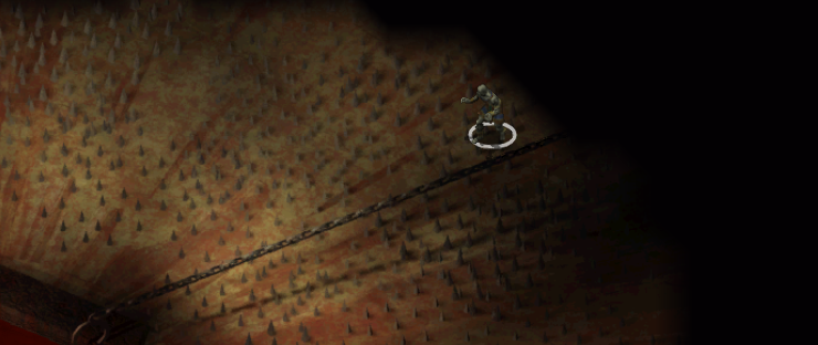 해당 방에서는 많이 움직이면 움직일수록 아래 가시 함정으로 피해를 받으니 주의해야 한다.