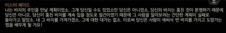 ※ 대화 선택을 하다보면 프랜들리 암 여관 3층에서 얻었던 황금 바지를 훔쳐서 달아다는 경우가 있으니 주의하자.