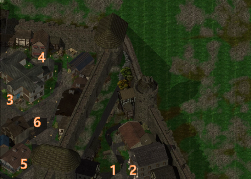 블러슁 머메이드라는 여관이 북동쪽 지역 왼쪽에 있다.