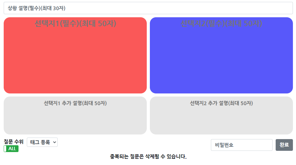 더불어 만들기 메뉴를 누르면 직접 질문을 만들수도 있다.