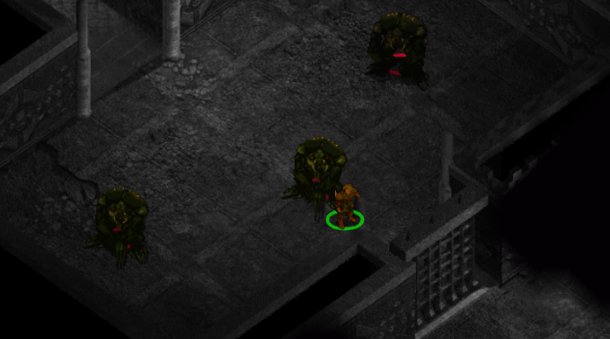 긴 통로를 지나서 아래로 내려온 후 문을 열고 나아가면 언데드 무리가 있을 수도 있고 없을 수도 있다.